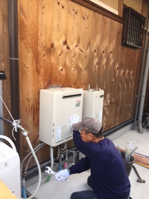 まずは、古くなった給湯器を撤去し、